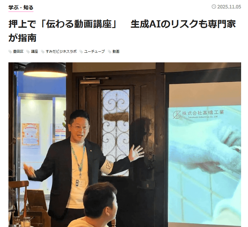 また、神輿YouTuberとしての顔も持ち、その知見を活かして小学校や企業向けに「動画の本質」や「正しい情報発信」についての講演を行っています。**『葛飾経済新聞』**に掲載された小学校での勉強会では、子供たちに動画撮影の楽しさや著作権のルールを伝えるなど、次世代の育成にも注力しています。