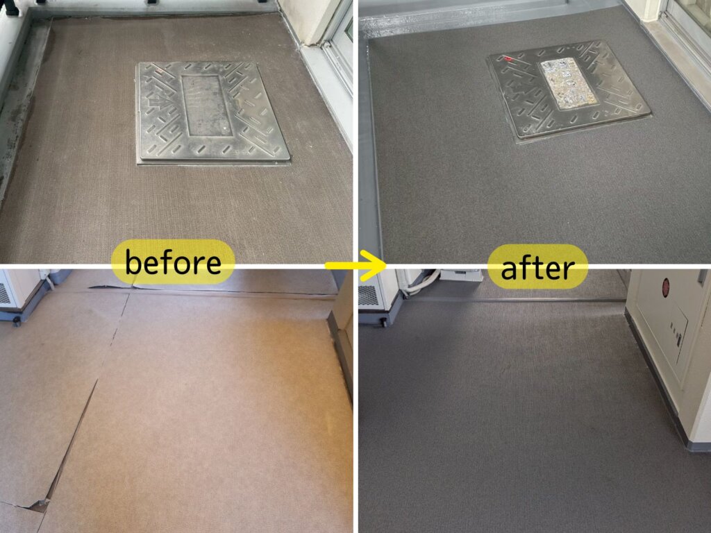 今後予定されている改修箇所でしたが、劣化の進行具合に加え、バルコニーは足場を必要とする工事であることから、今回あわせて施工することで耐久性・安全性・費用面のメリットが大きく、施工性も良いと判断し、最終検討まで見直しを重ねたうえで同時に実施しました。