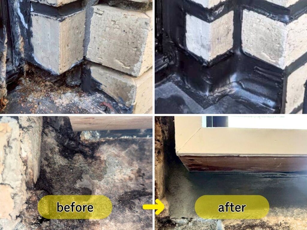 外壁のシーリング補修を行った後も漏水が確認されたため、室内側から開口部まわりの止水工事を行いました。