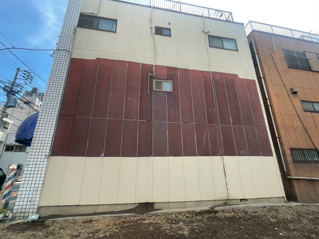 長年にわたり隣接建物との距離が非常に近く、足場の設置ができない状況が続いていたため、外壁の修繕工事を行うことができませんでした。しかし、今回隣接していた建物が解体され更地となったことで足場の設置が可能となり、修繕工事を実施する運びとなりました。