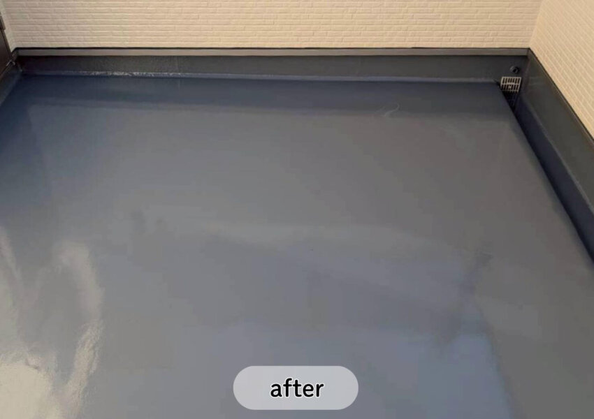 施工前は、既存の防水層に経年劣化が見られ、防水機能の低下が懸念される状態でしたが、既存防水層の状況を確認しながら適切な工程でウレタン防水を施工することで、防水層全体が均一に仕上がり、防水性能が回復するとともに、見た目もすっきりと整った屋上へと改善されています。